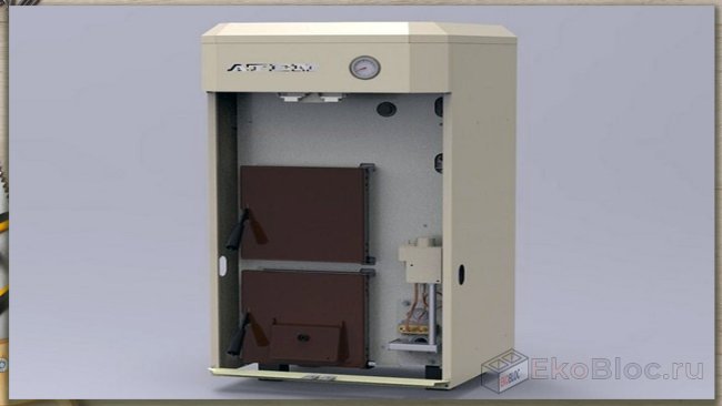 Российская разработка мощностью 22 кВт. Работает на твердом топливе, пеллетах, газе и электричестве.